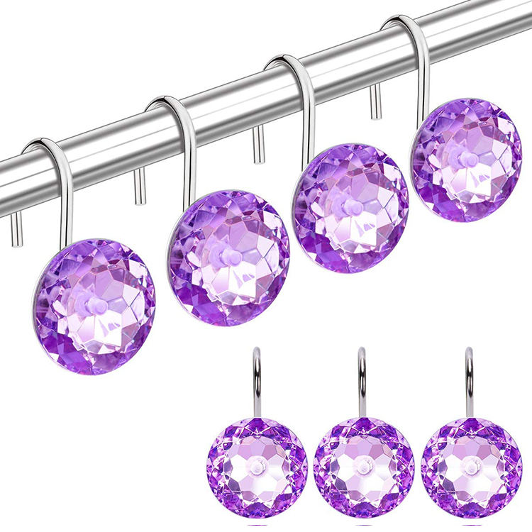 12 Pcs Acrilico Strass Decorativi di Rotolamento Tenda Della Doccia Gancio per Bagno Vasca Da Bagno Set