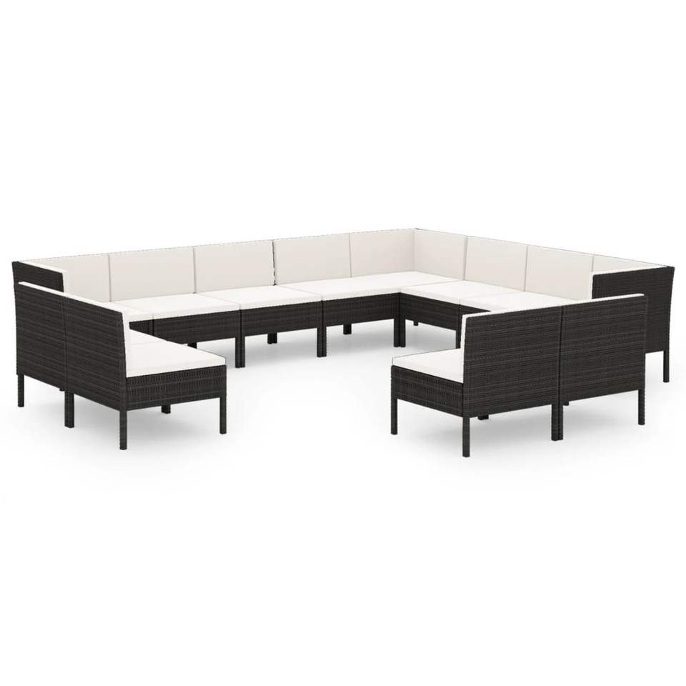 Set Lounge da Giardino in Rattan PE Nero da 12 Pezzi con Coperture Rimovibili, Arredamento da Esterno dal Design Contemporaneo per Uso Giardino