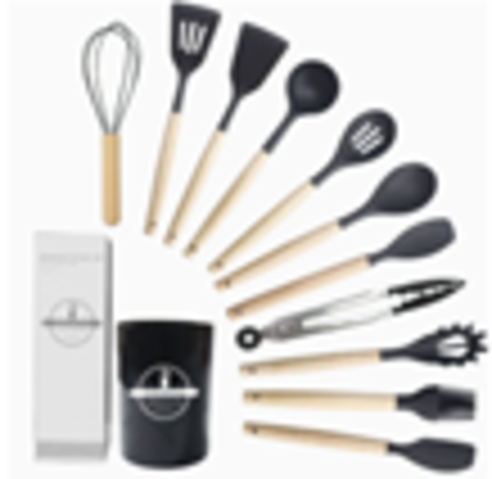 Set di 12 Utensili da Cucina Ecologici in Silicone Nero Resistenti al Calore e Antigraffio con Spatole Incluse Lavabili in Lavastoviglie