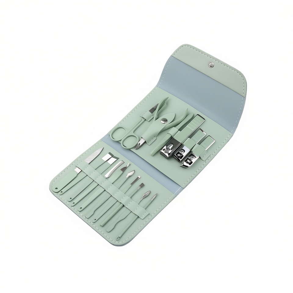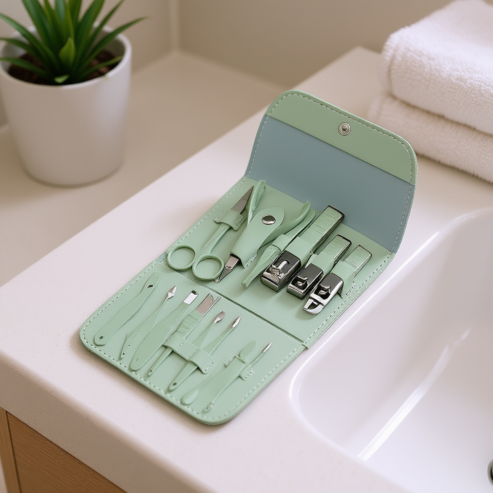 12-Piece Manicure Set With 5-In-1 Nail Clipper, Stainless Steel Tools, Portable Nail Care Kit For Adults, Classic Style In Green