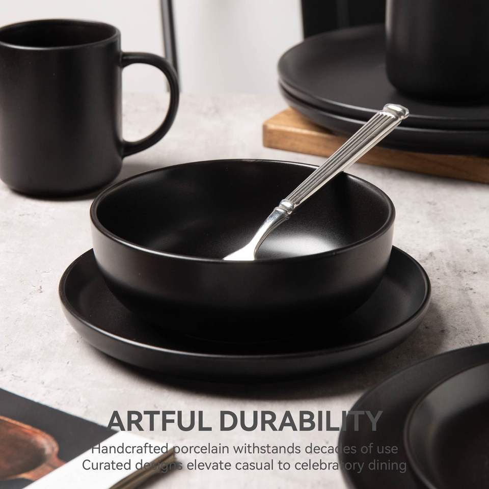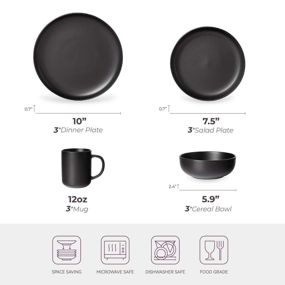 Set di Stoviglie in Gres da 12 Pezzi, Adatto per Microonde e Lavastoviglie, Piatti e Ciotole Non Tossici con Tazze, Design Impilabile