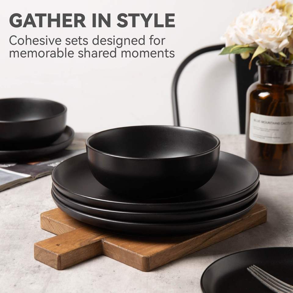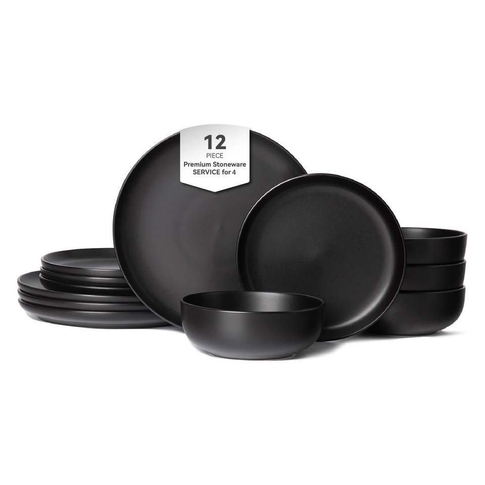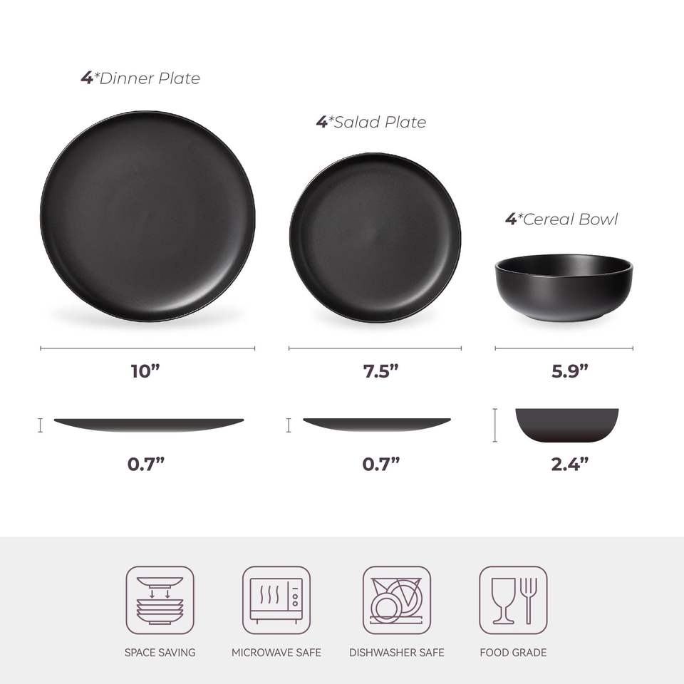 Set di Stoviglie in Gres Non Tossico da 12 Pezzi, Adatto a Microonde e Lavastoviglie, Ciotole e Piatti Impilabili con Tappetino
