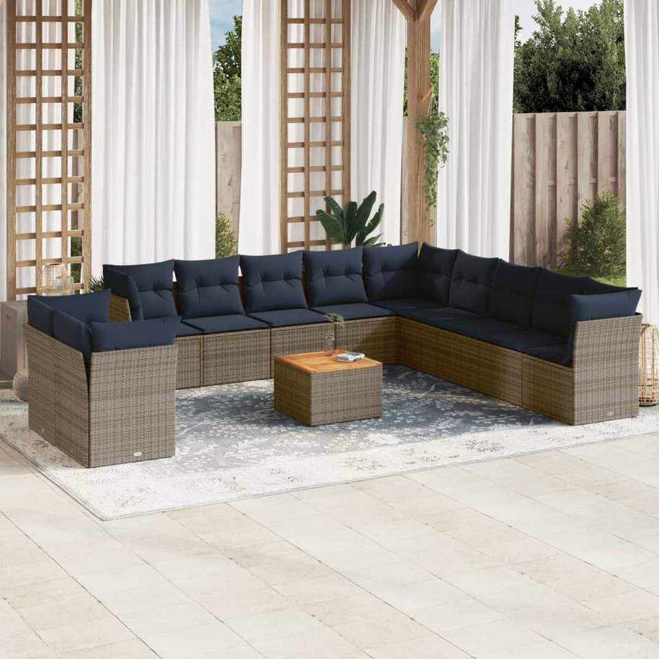 12 Piece Patio Sofa Set with Gray Poly Rattan Cushions Garden Sets