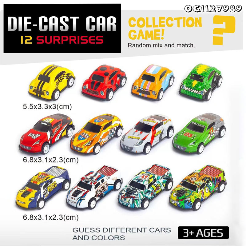 12 pezzi per bambini in metallo pressofuso, modello di auto da corsa, scatola personalizzata per ciechi, scatola regalo a sorpresa per bambini