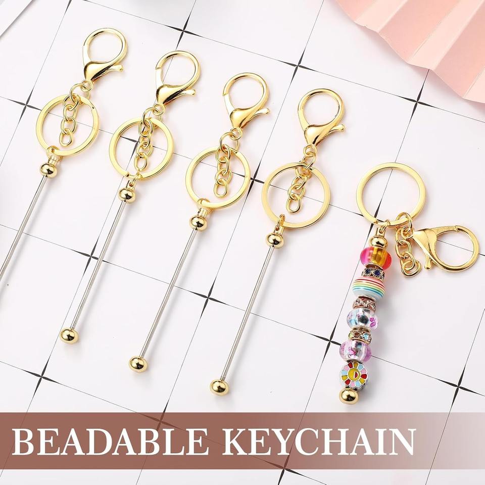 12 Pezzi di Aste per Portachiavi con Perline Fai-da-Te, Anelli per Portachiavi in Metallo, Ciondoli, Borse, Regali per Festival