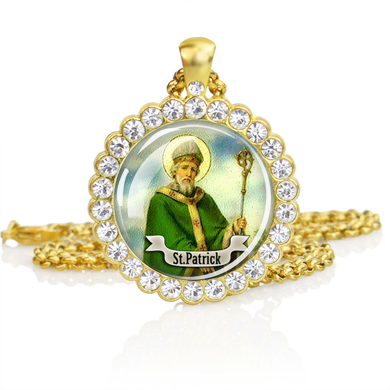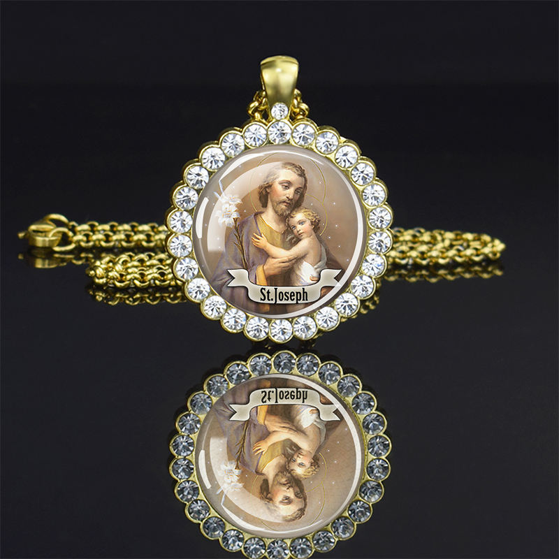 12 Saints Golden Necklace Christianity Luxury Rhinestone Diamond Glass Cabochon Pendant Religion Jewelry Gifts