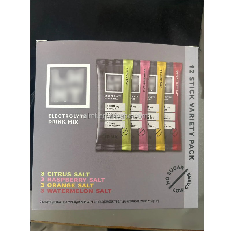 Confezione Assortita da 12 Stick, 4 Gusti, Senza Zucchero, Basso Contenuto di Carboidrati, 1000mg di Elettroliti, 200mg di Potassio, 60mg di Magnesio in Polvere, Integratore Alimentare