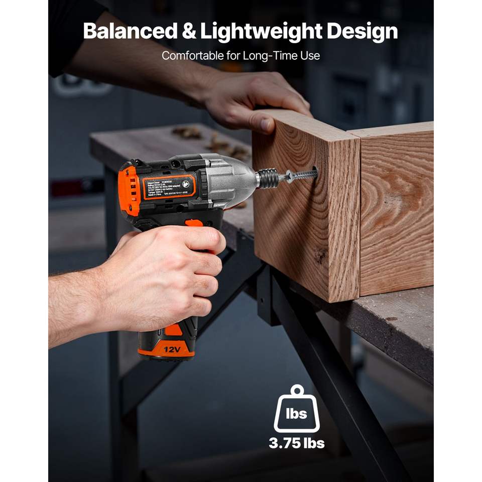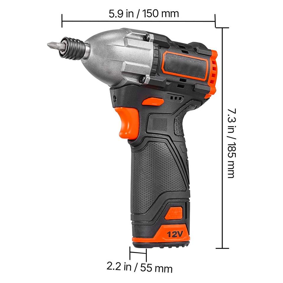 Kit Avvitatore a Impulsi con Motore Brushless 12V, Elettrico Senza Fili, Attacco da 1/4 di Pollice, 3000 RPM Velocità Massima, Accessori per Utensili Elettrici con Caricabatterie