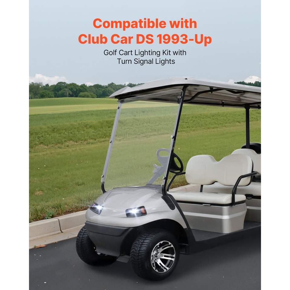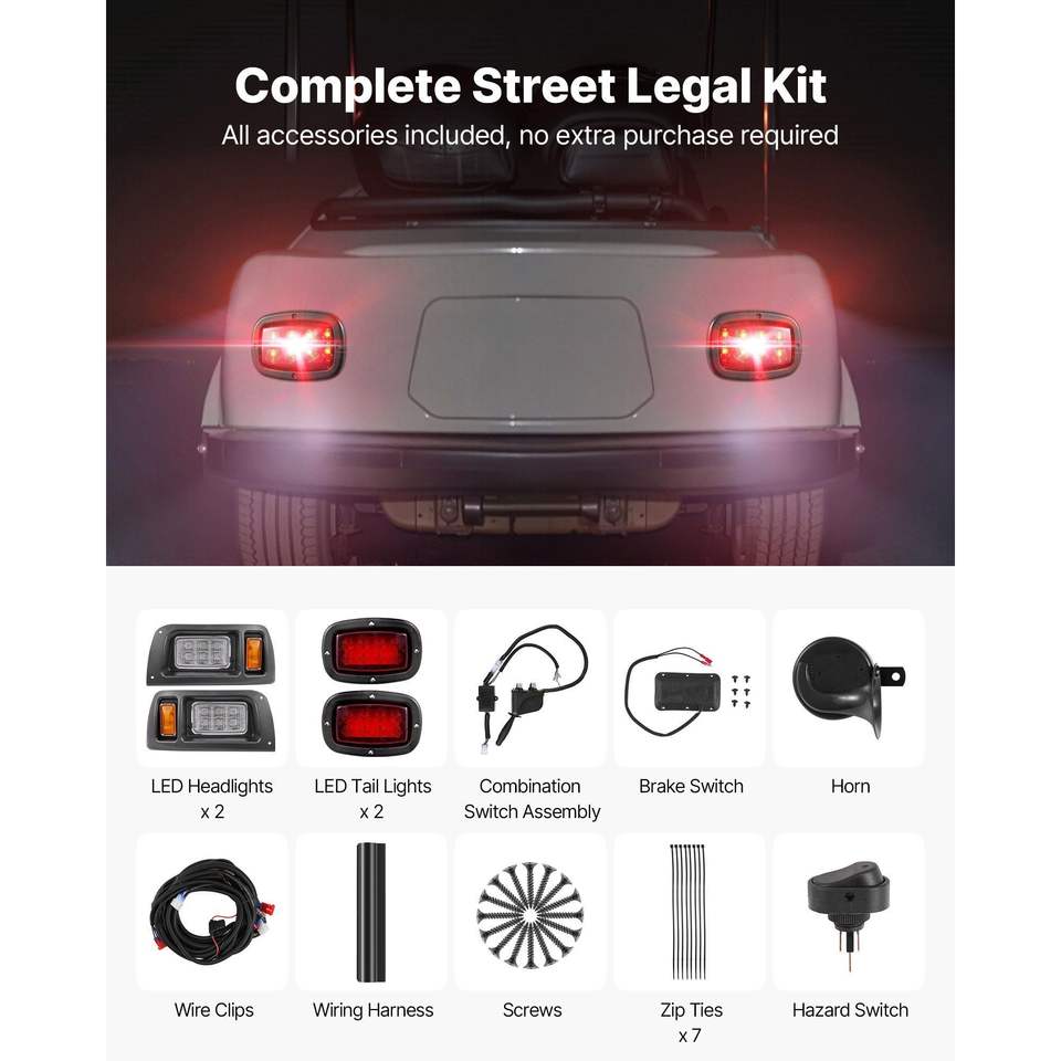 Kit Luci per Golf Cart 12 Volt Omologato per Strada con Fari LED, Luci Posteriori, Indicatori di Direzione e Interruttore di Emergenza con Cablaggio