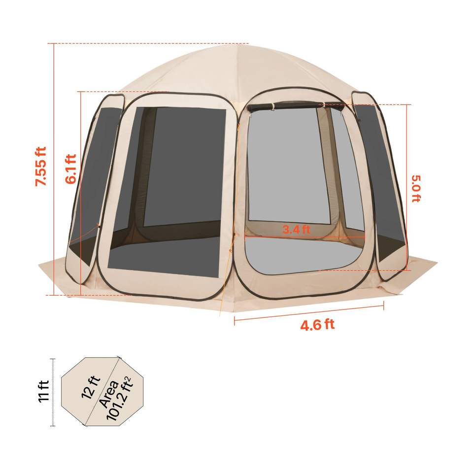 Tenda a Schermo Pop-up 12 x 11 piedi per 10-12 Persone, Portatile con Borsa per il Trasporto e Lati con Zanzariere per Uso Esterno