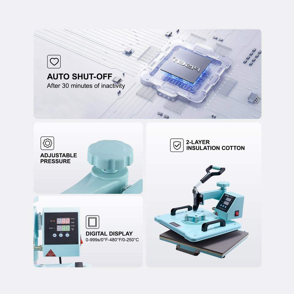 Pressa a Caldo 2-in-1 da 12 x 15 Pollici per Trasferimento Termico e Stampa su T-shirt, con Apertura a 360 Gradi per Cappelli e T-shirt