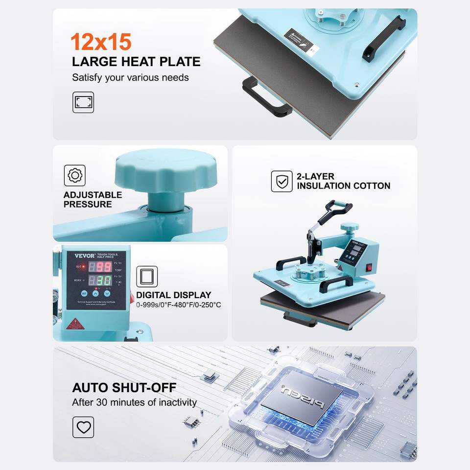 Pressa a Caldo 12 x 15 Pollici 8-1 per Trasferimento Termico, per Tumbler da 6-30 oz, Girevole a 360 Gradi per Stampa su Magliette
