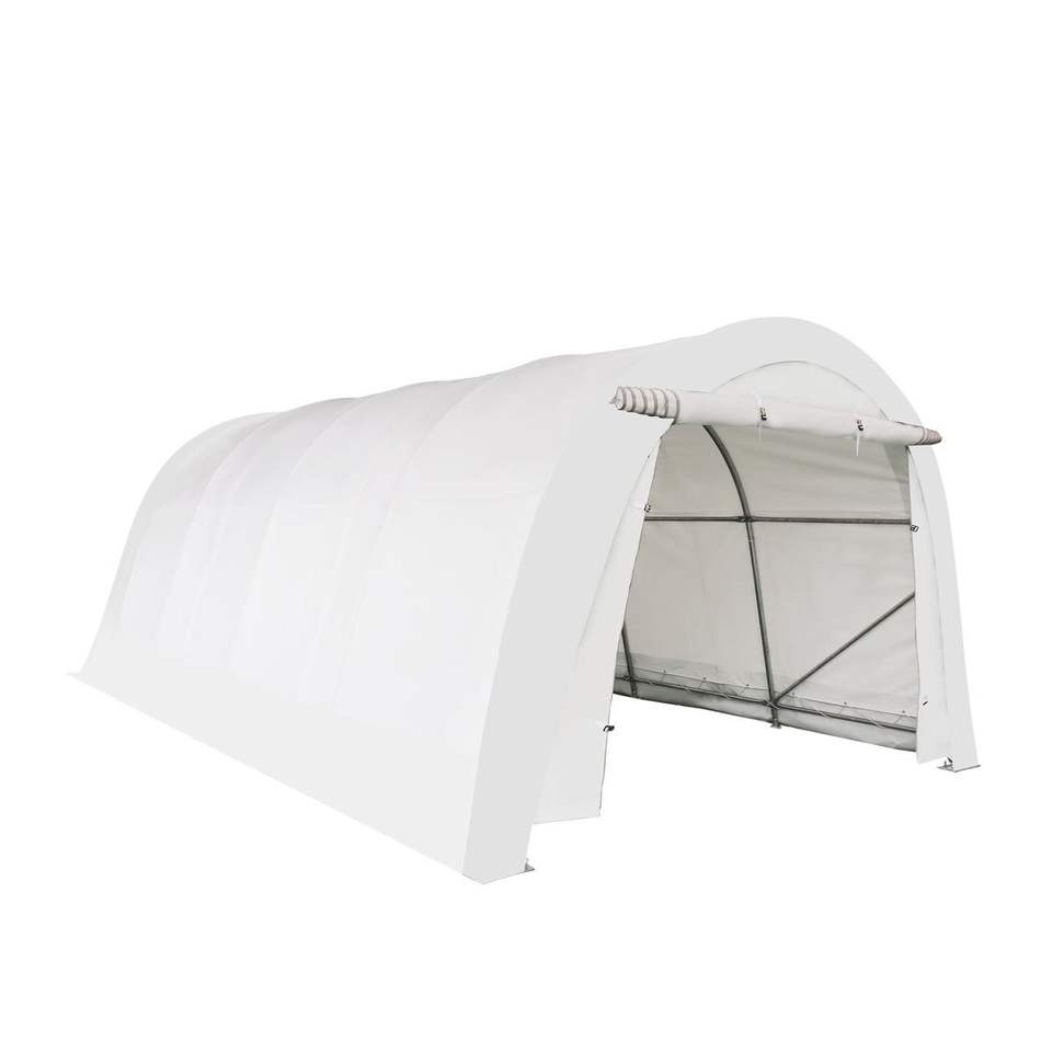 12' X 20' Heavy-Duty Car Shelter Rounded Roof 11 OZ PE Fabric Cover Front Roll-Up Door Galvanized Steel Frame Storage