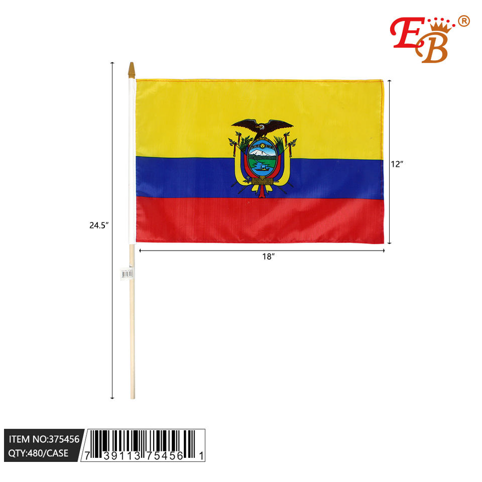 12"X18" Ecuador Hand Flag Custom Logo Digital Printed Rainbow Car Flag Nylon/Polyester/Plastic Material Car Display Model 375456