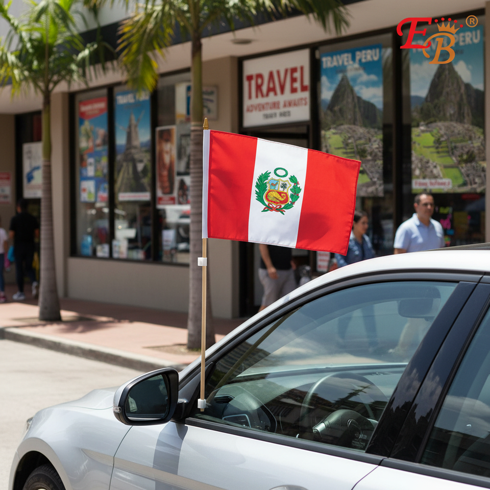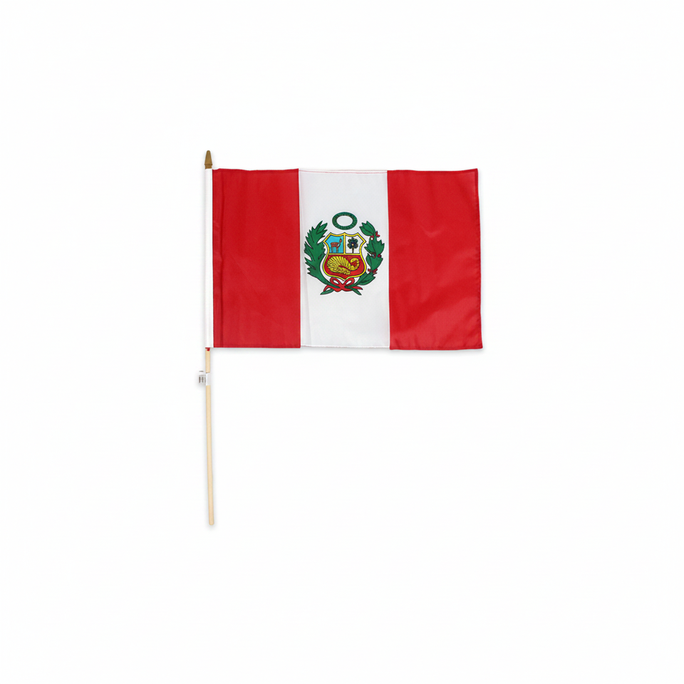 12\"X18\" Peru Hand Flag Custom Logo 40DZCS/CS Car Display Polyester Plastic Digital Printed for Automotive Travel Agency Use