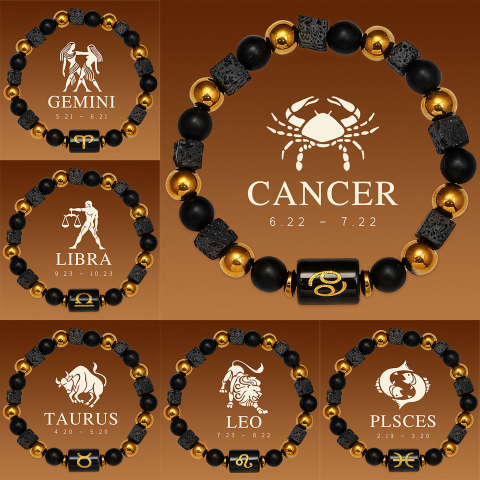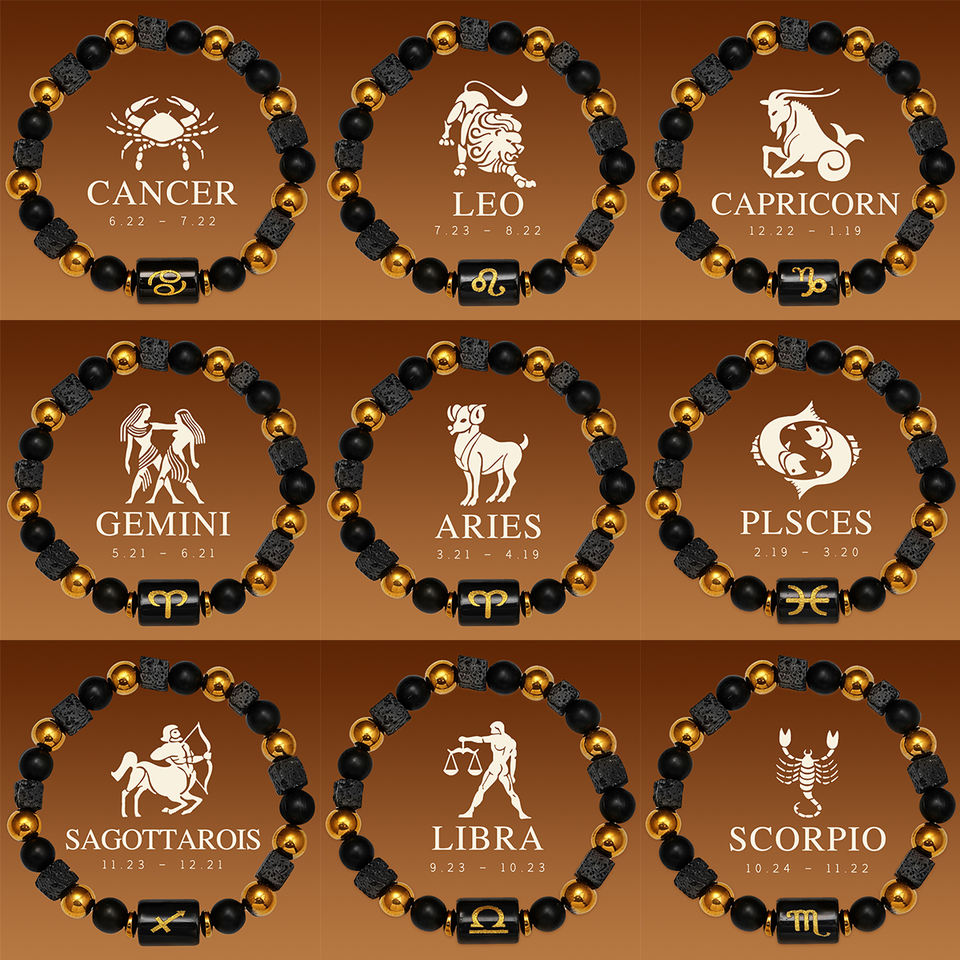 Braccialetti dei 12 Segni Zodiacali in Pietra Naturale, Bracciale Cancro Vergine Leone Bilancia, Regali per Coppie e Amicizia, Gioielli Portafortuna