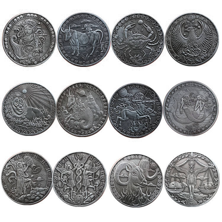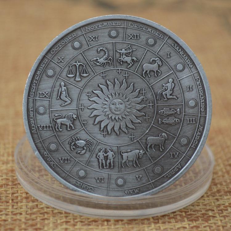 12 segni zodiacali medaglia di moneta commemorativa placcata in argento