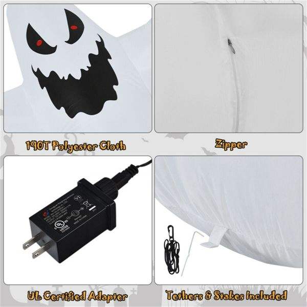 12 ft Tall Spooky Halloween Inflatable Ghost LED Lights Waterproof Fabric Spikes/Ropes for Outdoor Holiday Yard Decorations