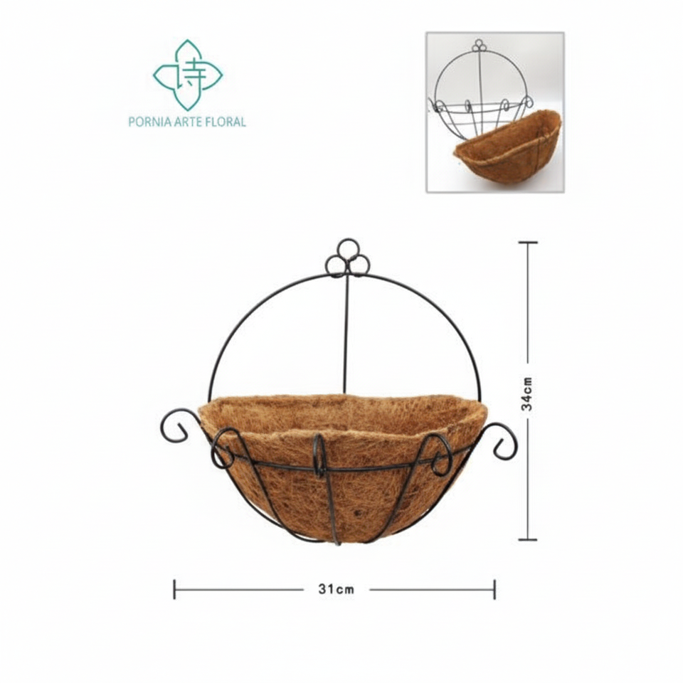 12-inch Brown Wicker Hanging Planter - Wooden Planter