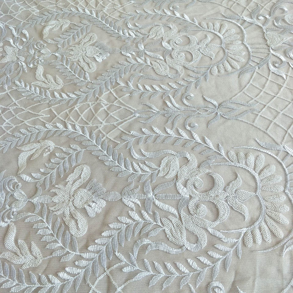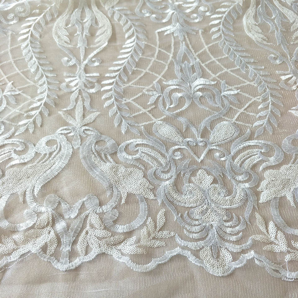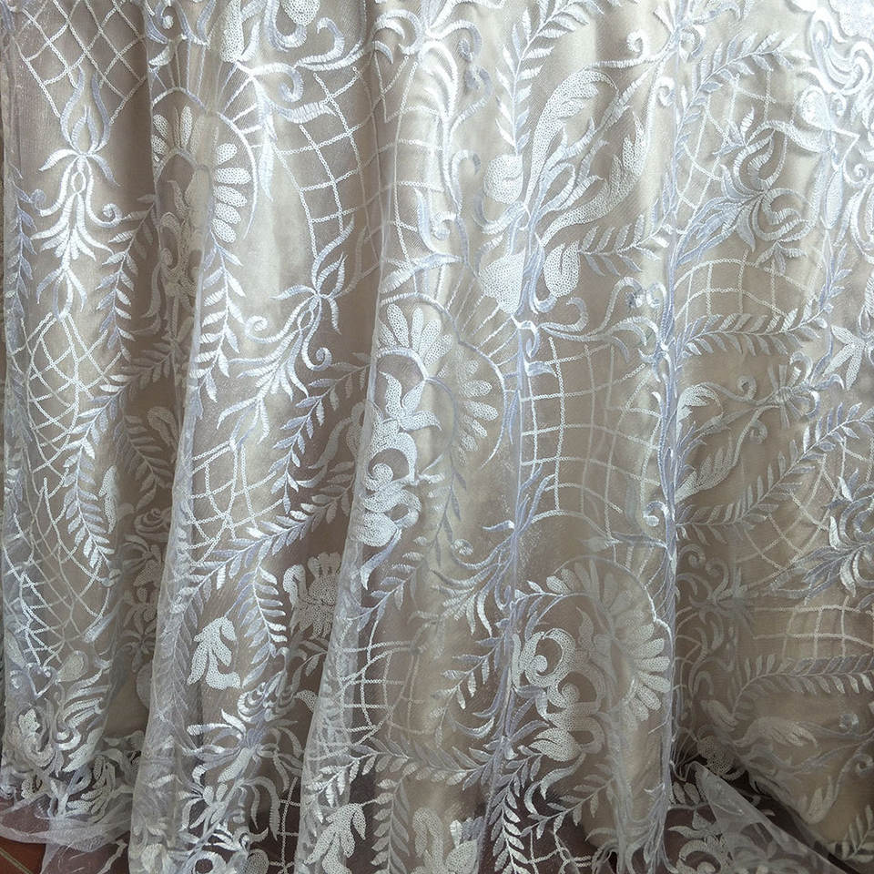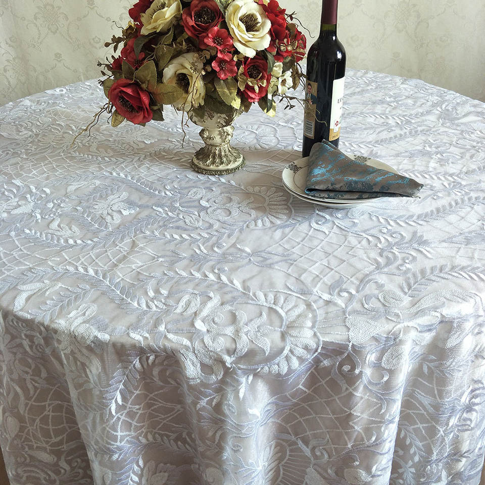 120 pollici bianco ricamato Vintage pizzo copertura della tavola paillettes tavolo sovrapposizione tovaglia per la festa di nozze