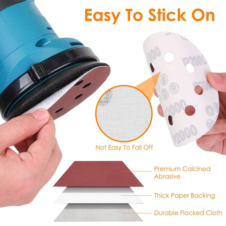 Confezione da 120 Dischi Abrasivi Rotondi da 5 Pollici con 8 Fori, Grana 2000, per Levigatrice Roto-Orbitale, Dischi Abrasivi di Alta Qualità