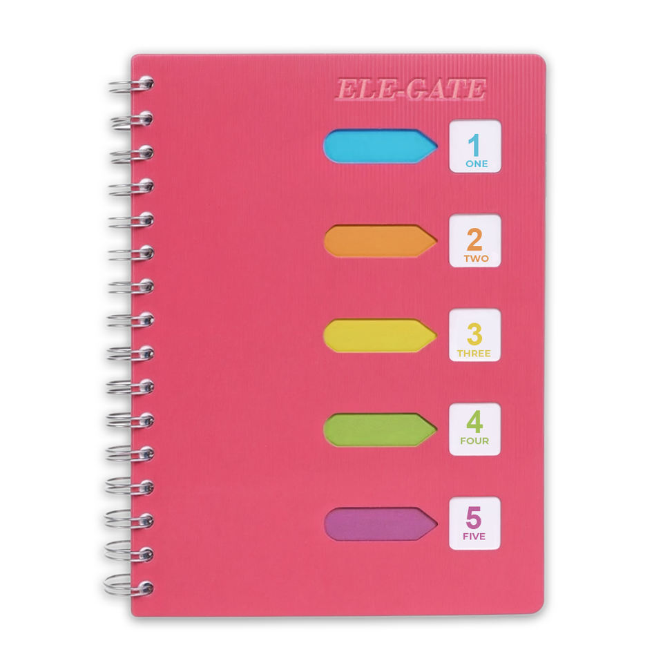 Quaderno A5 da 120 Fogli con Copertina in Pelle, Rilegatura a Spirale Termica, Divisori Colorati, Carta Offset, Materiale Copertina per Diari