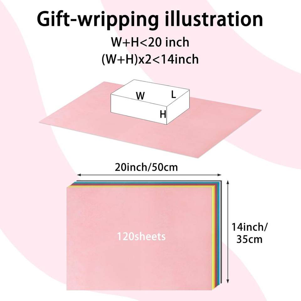 120 Fogli di Carta Velina Colorata 50x35cm per Decorazioni di Matrimoni e Feste di Compleanno, Ideale per Sacchetti Regalo e Confezioni Artistiche