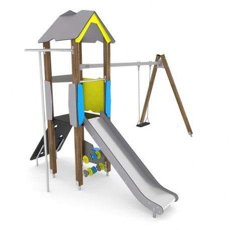 120 cm Height Complete Tower with Walking Surface and Slide Including Swing-for Younger Kids