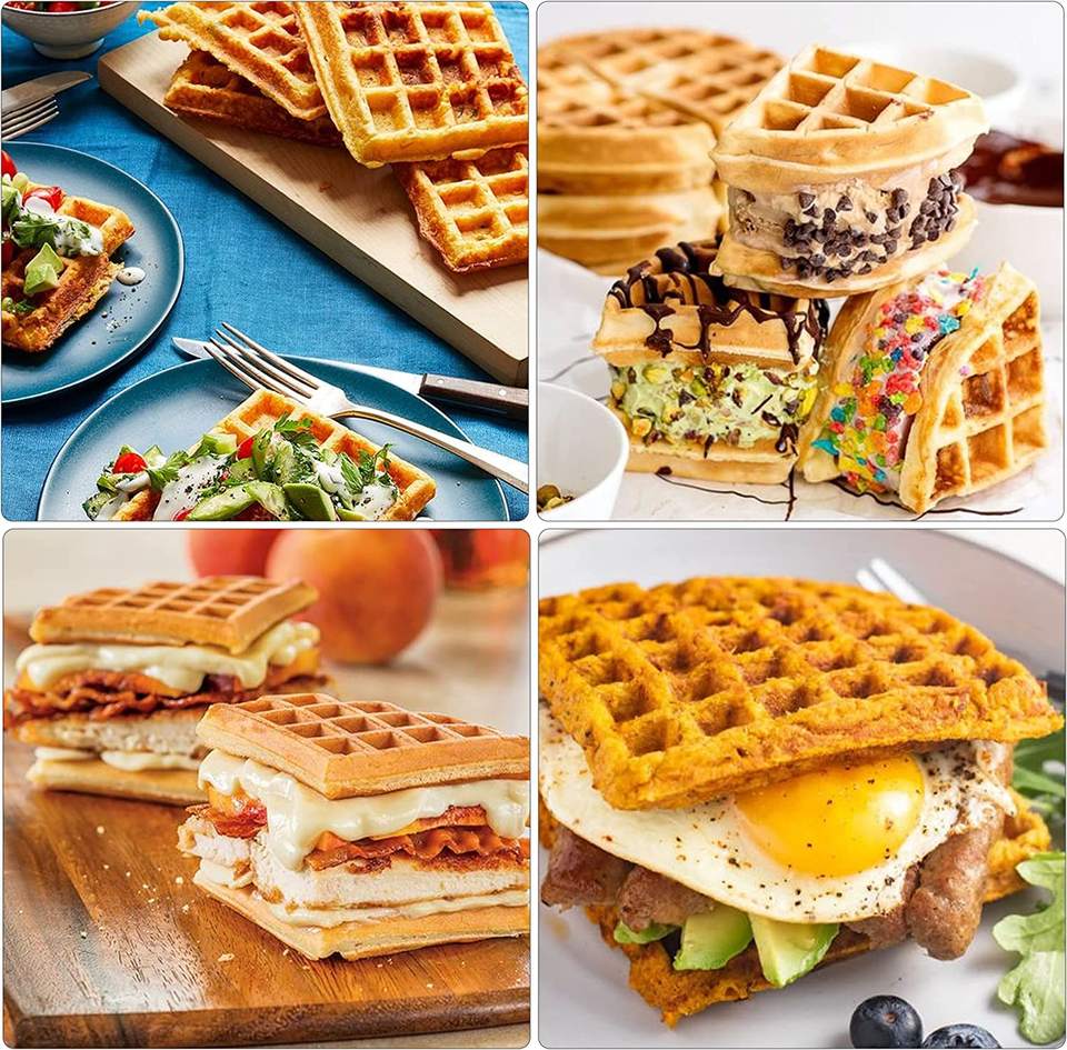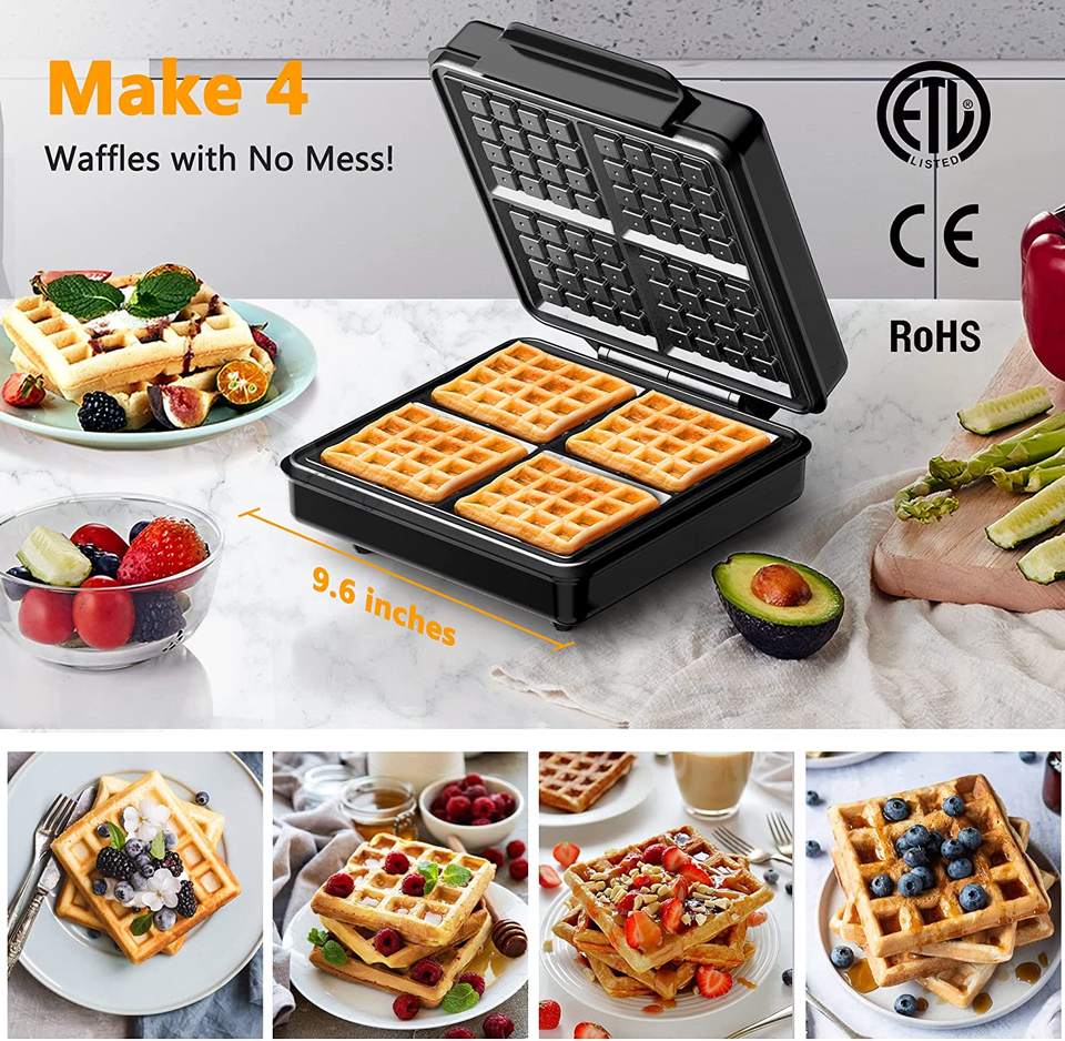 Piastra per Waffle belga da 1200W con indicatori luminosi per colazione, macchina per Waffle antiaderente quadrata a 4 fette