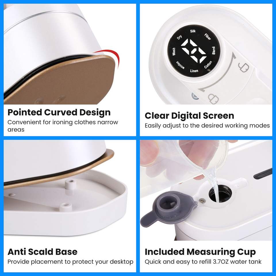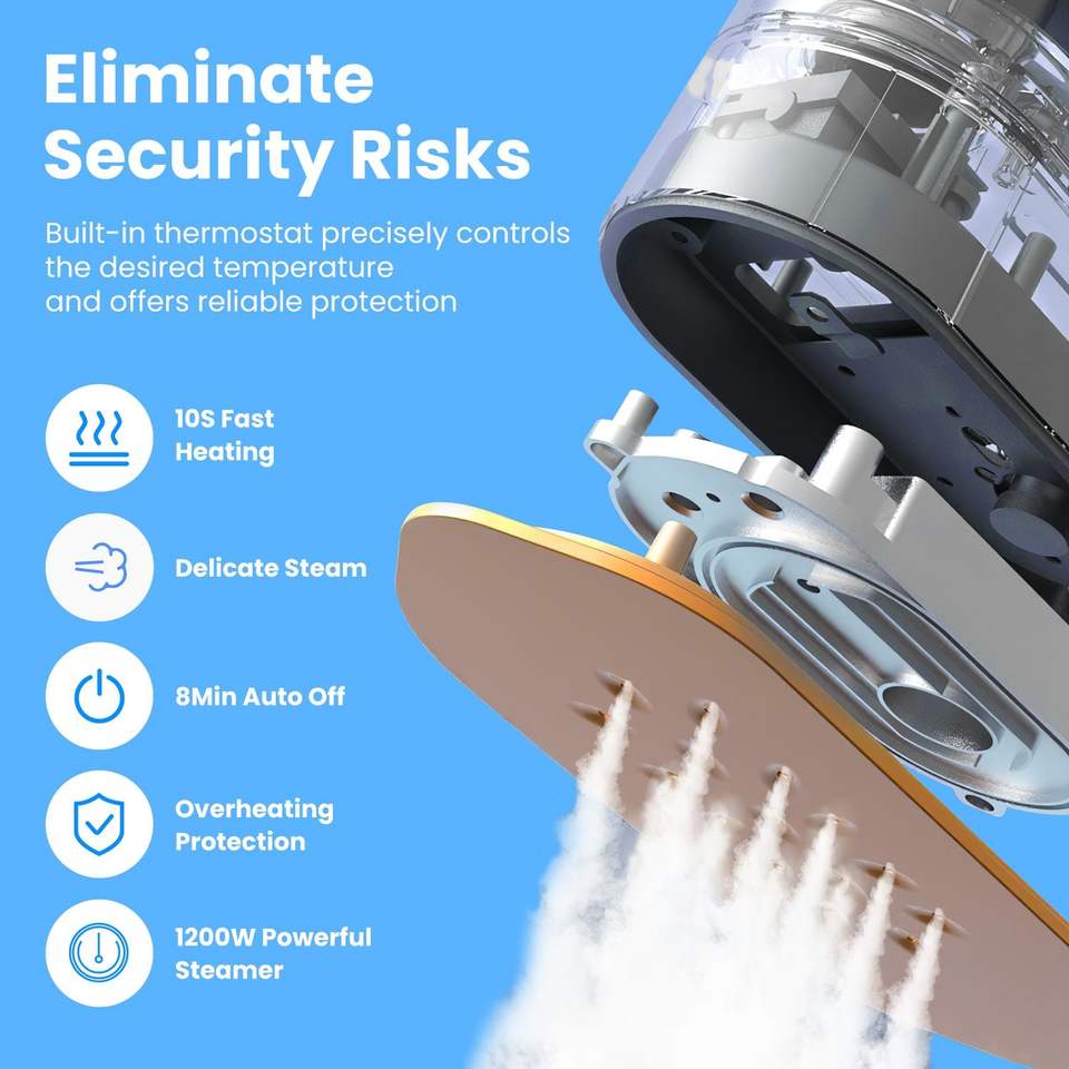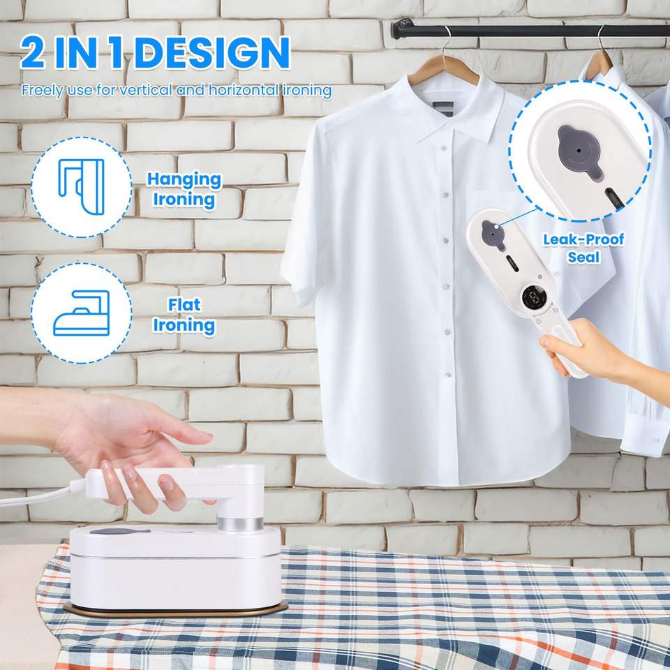Ferro da Stiro Verticale Portatile da 1200W con Modalità di Stiratura a Secco e a Vapore, Manico Girevole a 180 Gradi e Riscaldamento Rapido in 10 Secondi