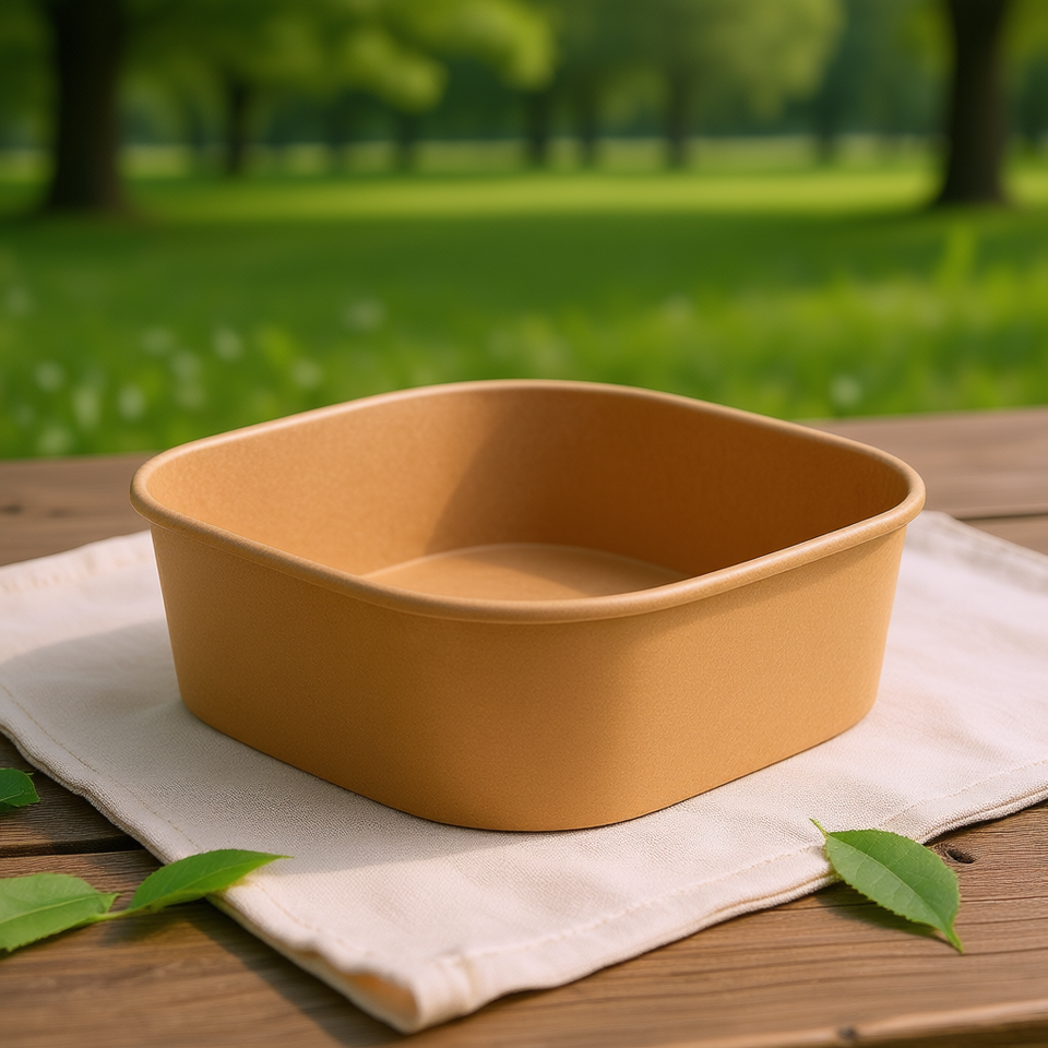 1200ml (39oz) Disposable Square Bowl Kraft Paper with PE Coating