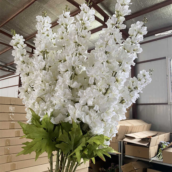 Nome del prodotto:Fiori Artificiali di Delphinium Bianco in Seta con Stelo Lungo 120 cm