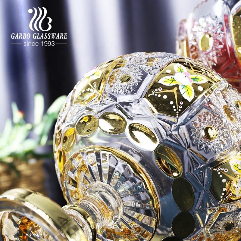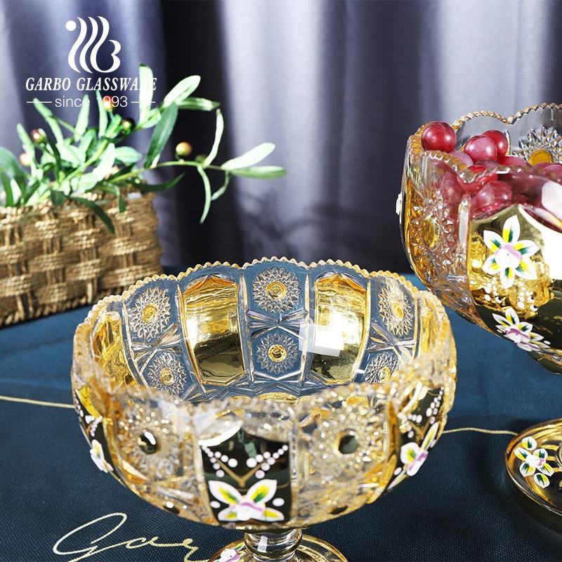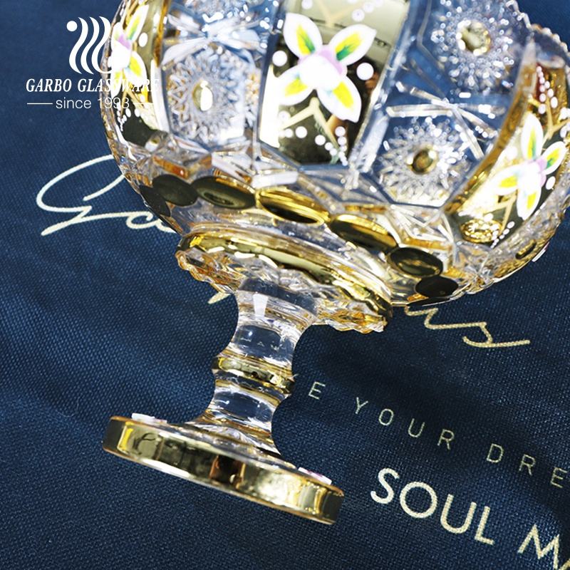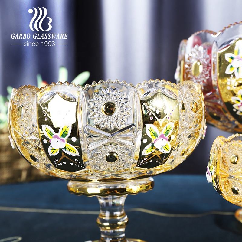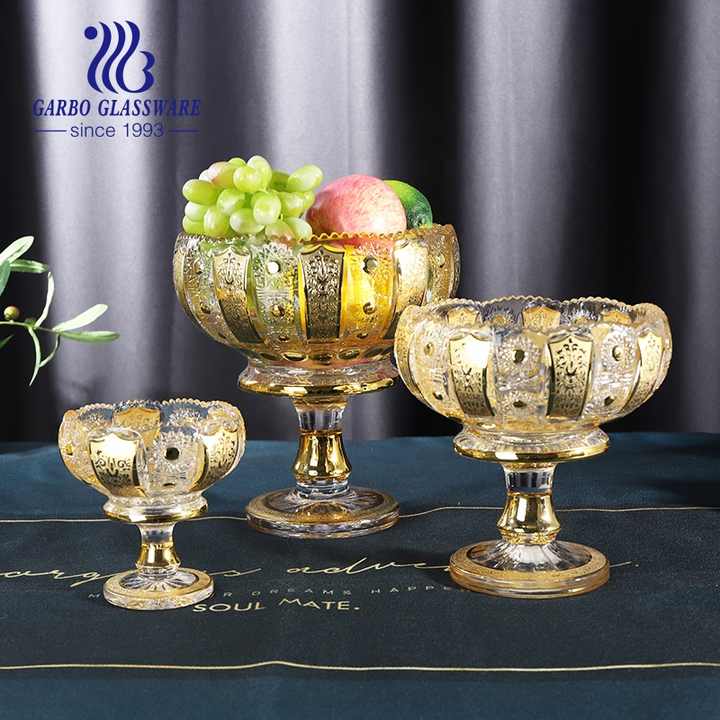 120 millimetri di Lusso di Stile Medio Oriente placcatura In Oro ciotola di frutta di vetro con il basamento tre dimensioni grandi e piccoli 9pcs d'oro set di ciotole di vetro