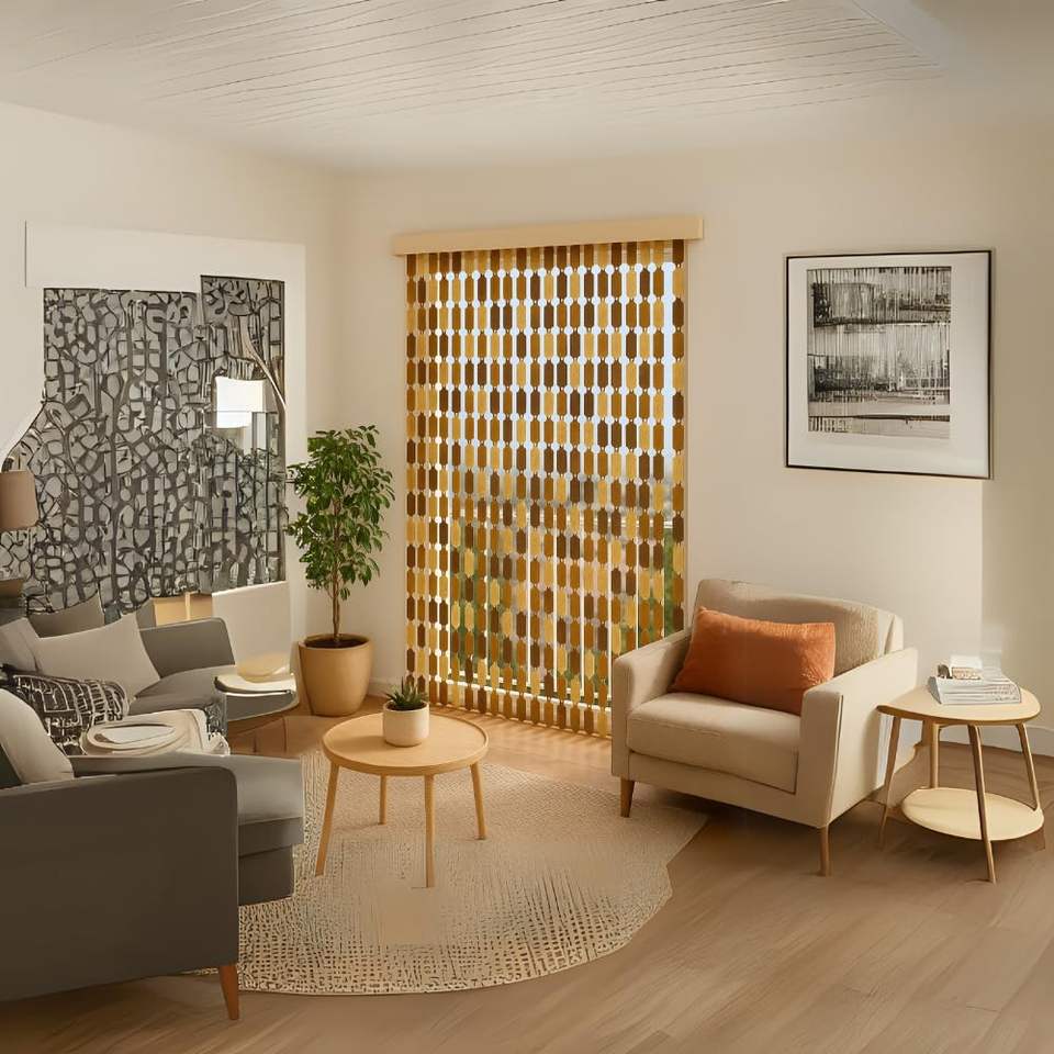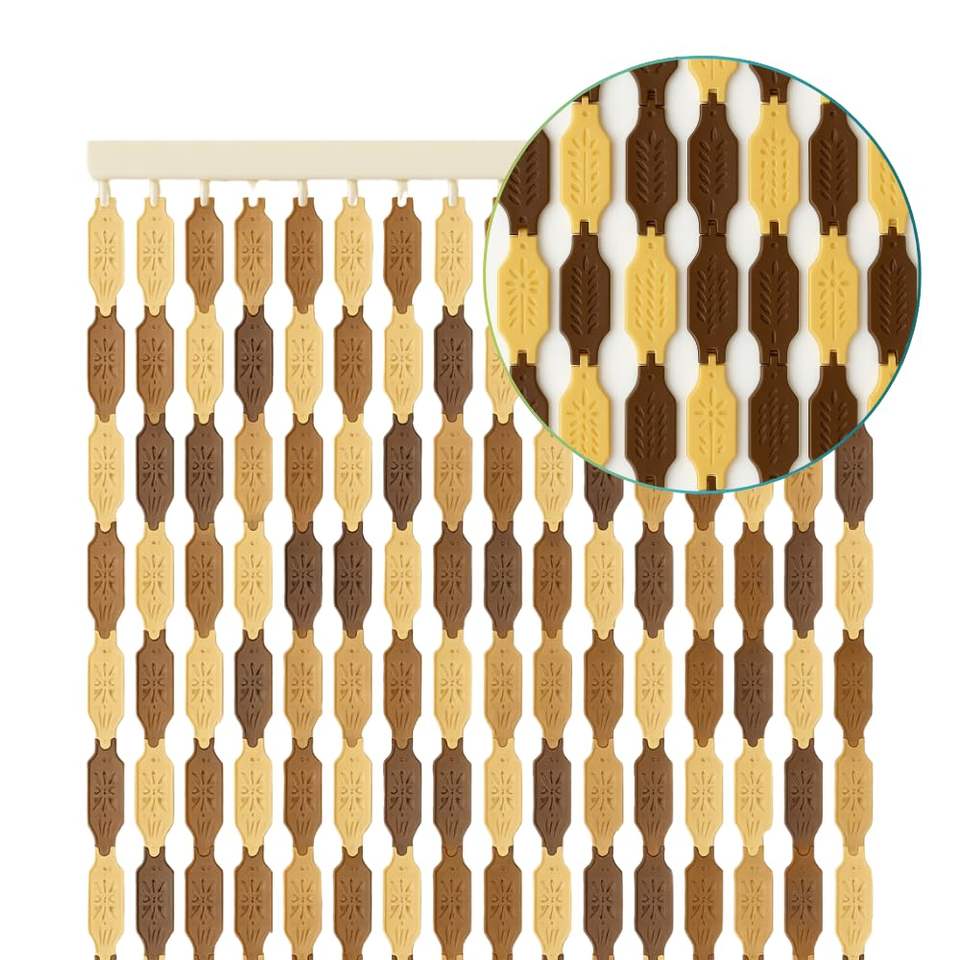 120x225 cm Melange-Themed Fly Screen Curtain in Brown Color with Polyethylene Fringes Plates Door & Window Accessory