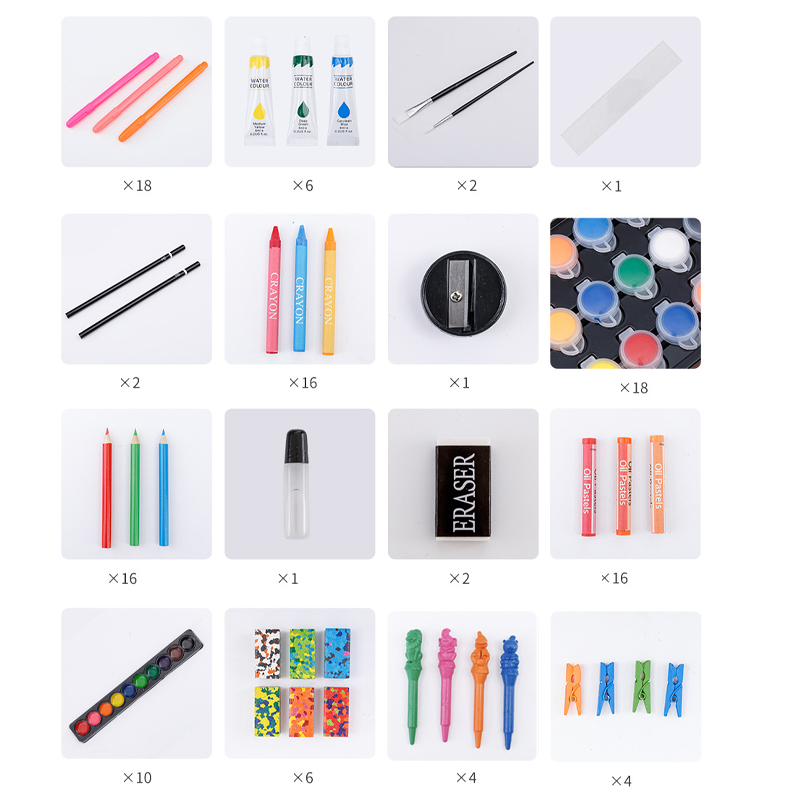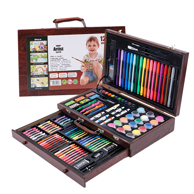 123pcs Watercolor Wooden Box with Oil Pastels Crayons Colored Pencils Non-Toxic Markers Pen Colour Pencil Children Drawing Set