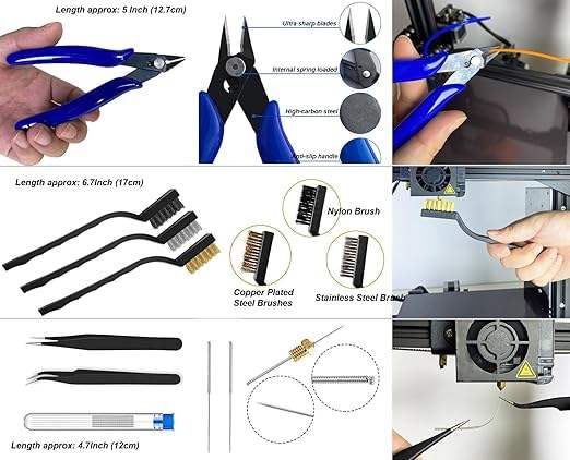 124 pezzi accessori per stampa 3D con borsa degli attrezzi per modellatore stampante 3D strumenti base diversi Kit pulizia ugello di stampa 3D