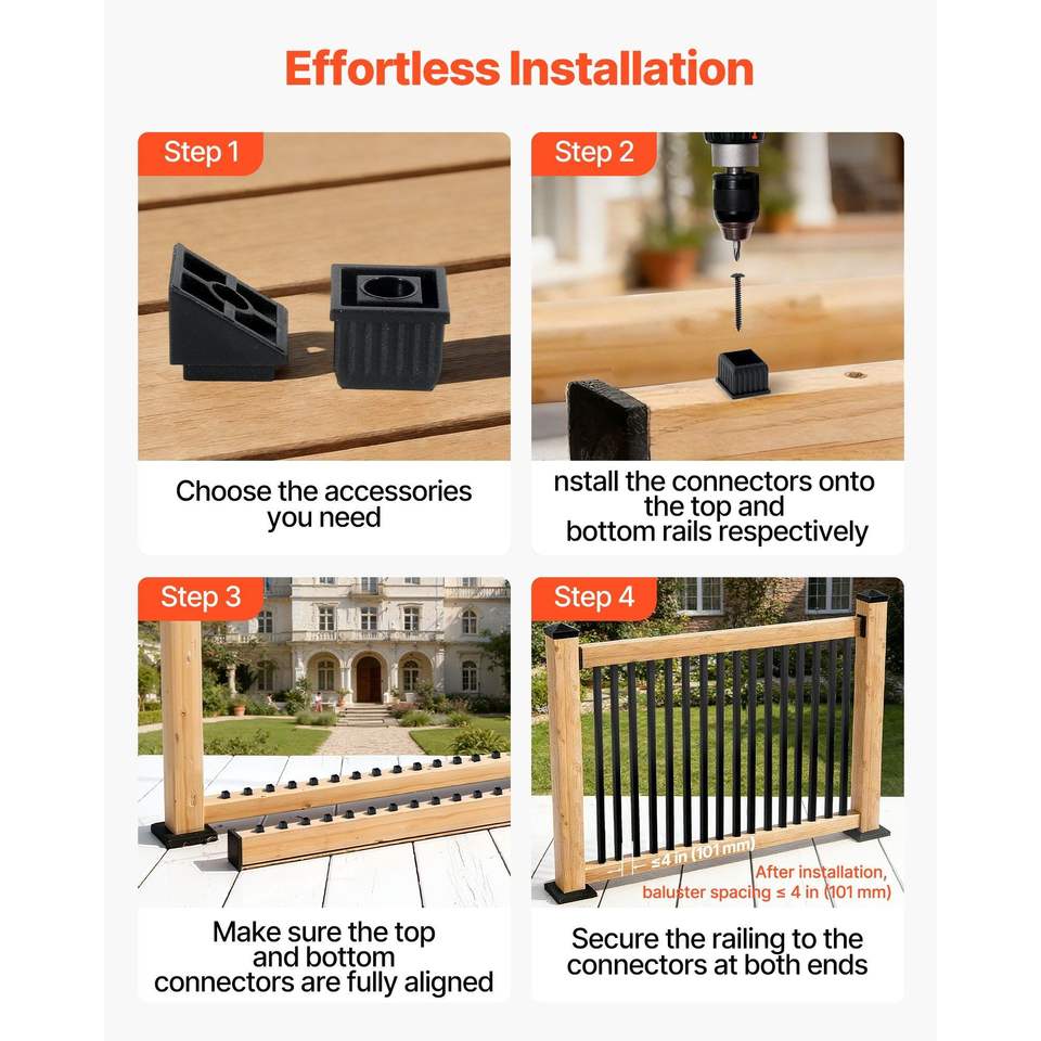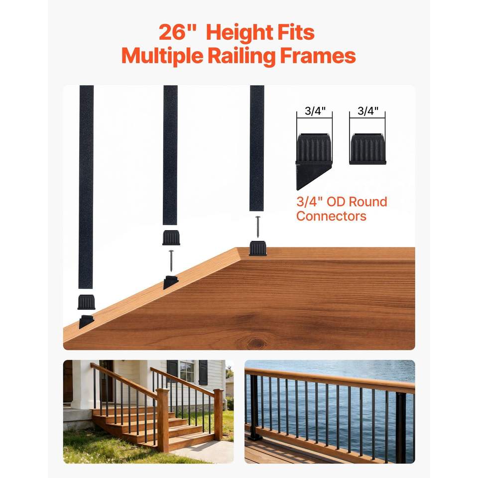 Confezione da 125 Pezzi di Balaustre in Alluminio Quadrate da 3/4 x 26 Pollici, Balaustre Metalliche Cava per Ringhiere e Scale, e Connettori