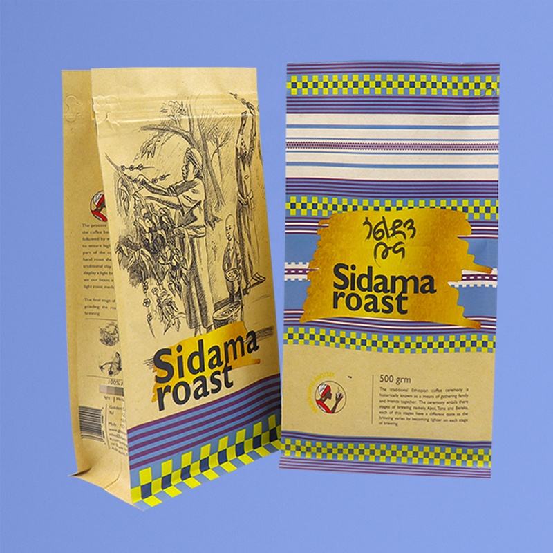 Sacchetti con Fondo Piatto e Chiusura a Zip per Caffè Tostato 125g 8 oz 340g, Confezioni Alimentari Personalizzate Doypack con Valvola