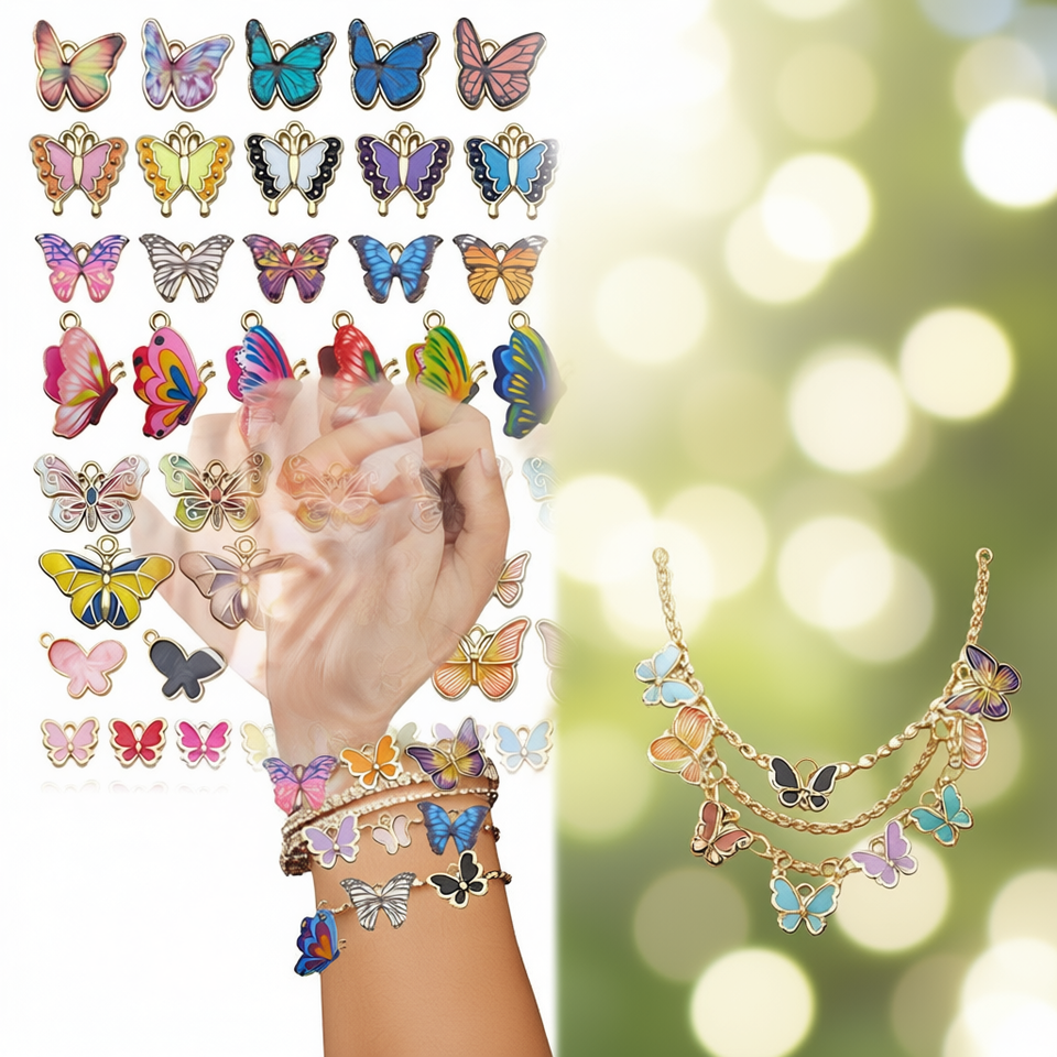 Ciondoli a forma di farfalla, 126 pezzi, placcati oro 18 carati, smaltati, per la creazione di collane, componenti per gioielli fai da te