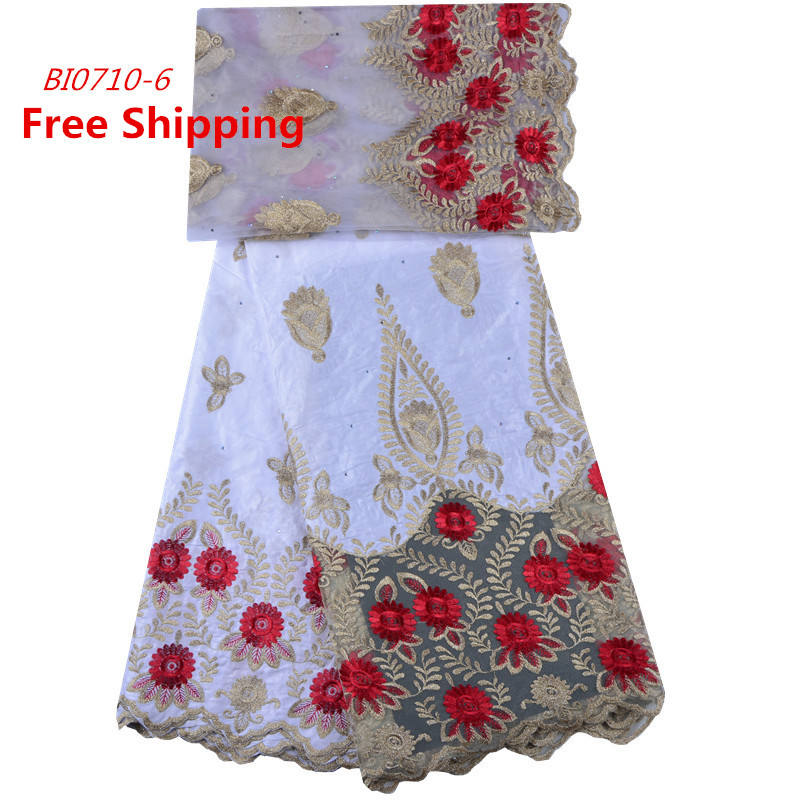 2019 di pizzo africano 1293 2 tessuto di Tulle bianco e rosso aggiunge tessuto Bazin Riche 5 iarde
