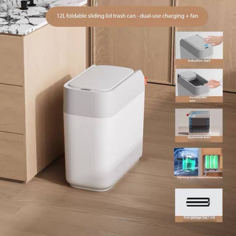 12L Sliding Cover Smart Dustbin Plastic Intelligent Garbage Bin with Suction Cling Garbage Bag for Bathroom Kitchen Office Use