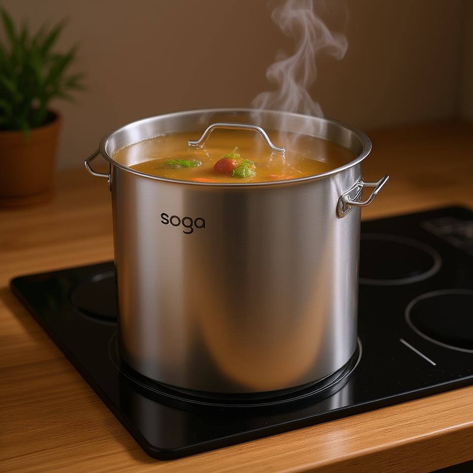 Soga Stainless Steel Stock Pot 12L Large Capacity With Lid For Soup And Stock Cooking