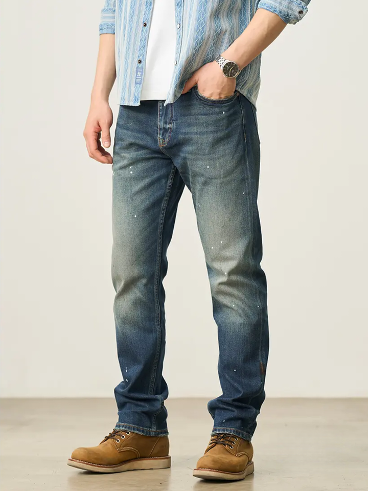 12OZ Men's Vintage Jeans Breathable Casual Straight Hip Hop Styles Mid Low Waist Woven Denim Size Skinny Fit for All