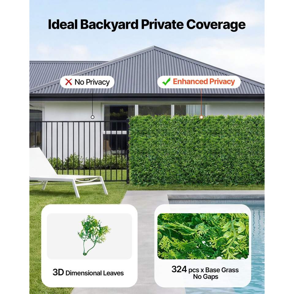 12 Pannelli di Bosso Artificiale 20x20 cm, Muro Vegetale per Protezione Solare, Sfondo Verde, Siepe per Privacy, Recinzione Finta, Decorazione da Giardino