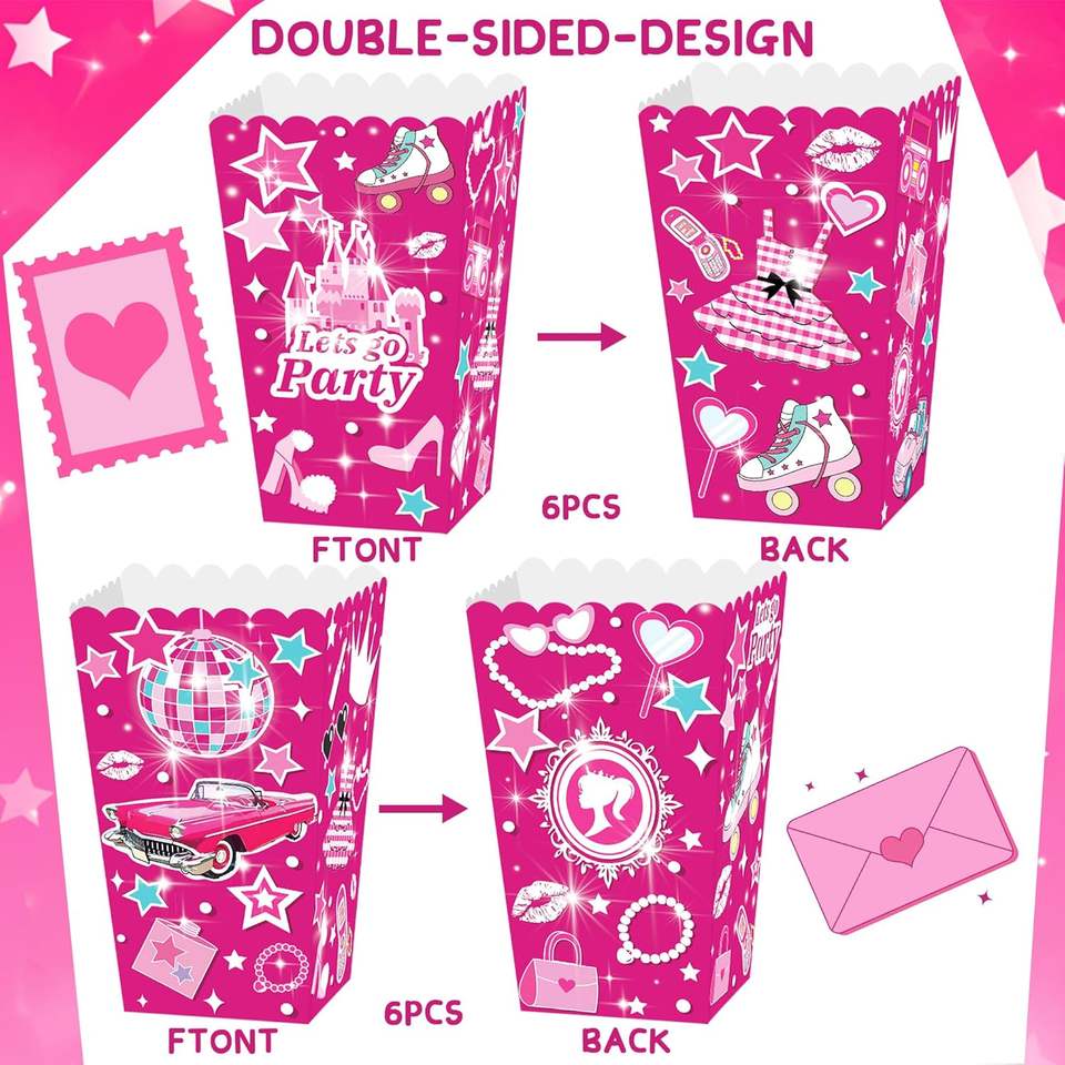 12Pcs Hot Pink Girl Paper Popcorn Box Lets Go Party Favor Popcorn Box for Lets Go Party Favor Birthday Bachelorette Party Supply