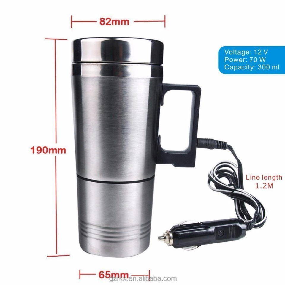 Bollitore Elettrico Portatile da Auto 12V 24V 300ml in Acciaio Inox, Tazza Riscaldante Rapida per Acqua, Tè, Caffè, Latte