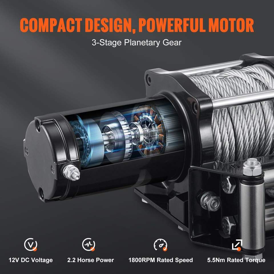 Verricello Elettrico con Cavo in Acciaio da 12V, Capacità di Carico 4500 lb, Telecomando Wireless IP55, 1/4 x 39ft per ATV UTV, Prodotto a 4 Verricelli