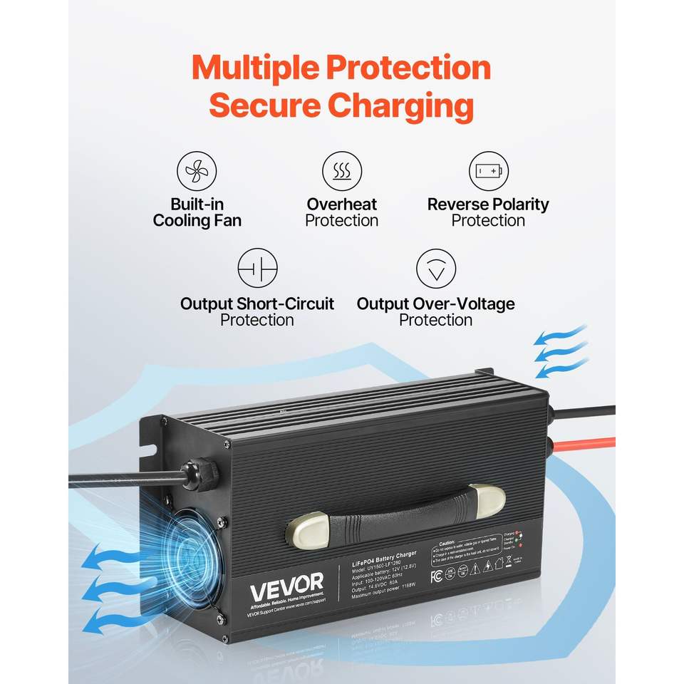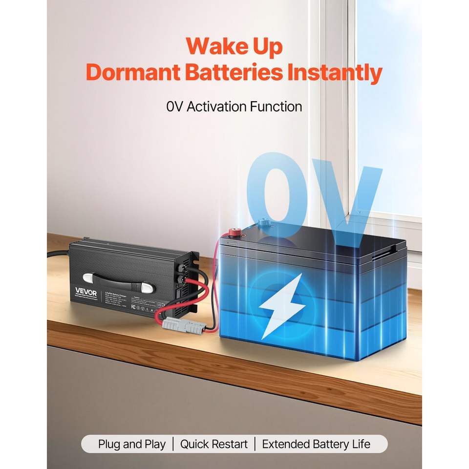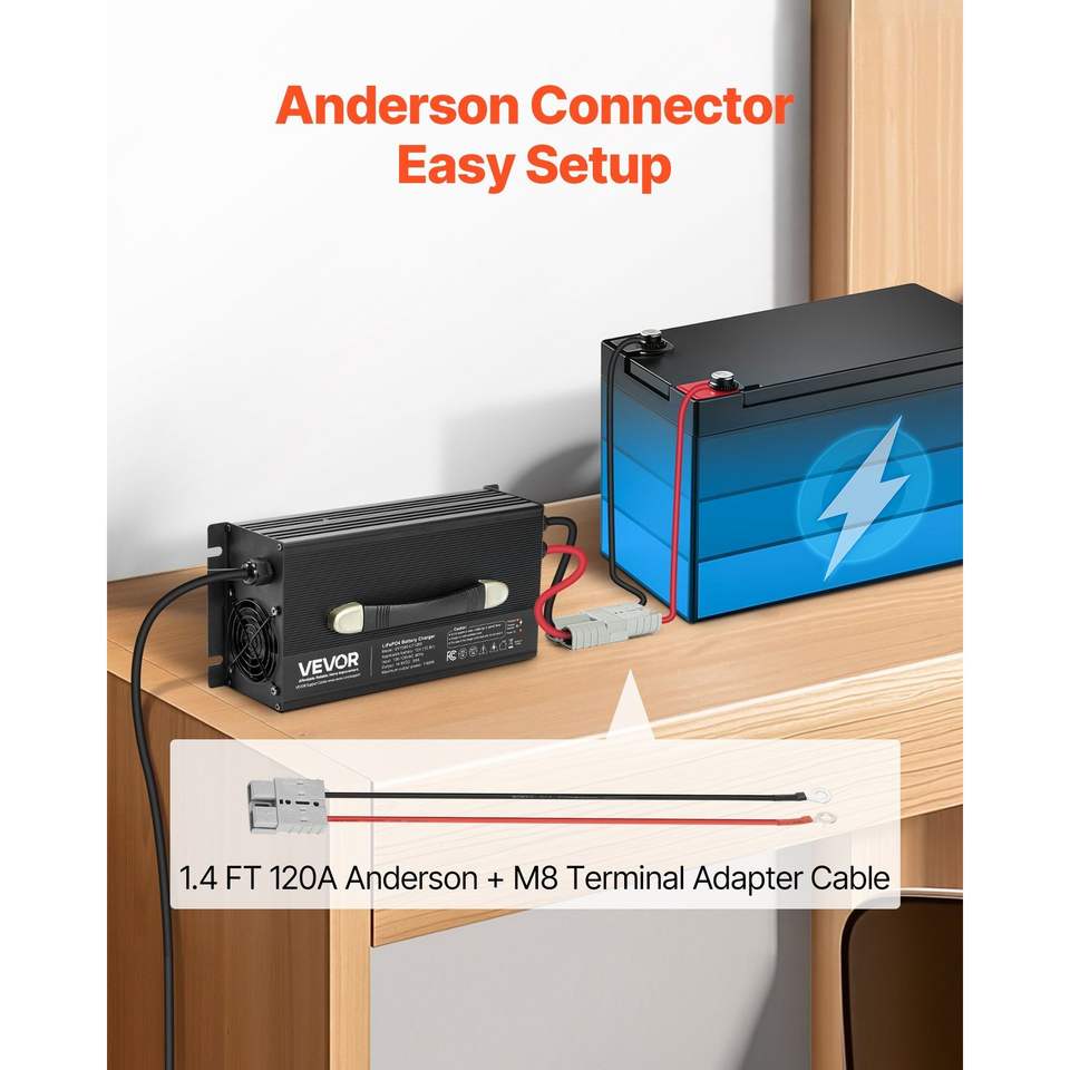 Caricabatterie Intelligente 12V 80A 14.6V AC-DC per Batterie al Litio con Connettore Anderson, Indicatore LED, Attivazione 0V per Batterie LiFePO4