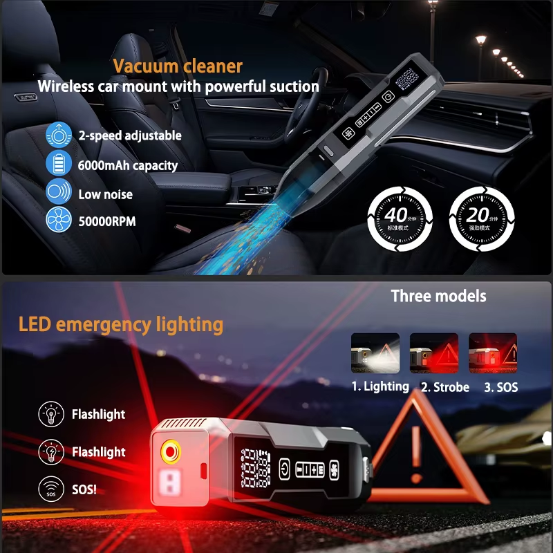 HA CONDOTTO LA Luce, Spark A Prova di, Schermo digitale, Booster per Batteria Auto, Aspirapolvere e Pompa d'AriaFunzione