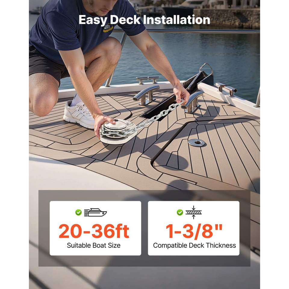 Verricello Elettrico Verticale 12V DC 1100W per Ancoraggio da Pesca, per Catena da 1/4 di Pollice e Cavo in Nylon da 9/16 e 5/8 di Pollice, Max Pu Winch
